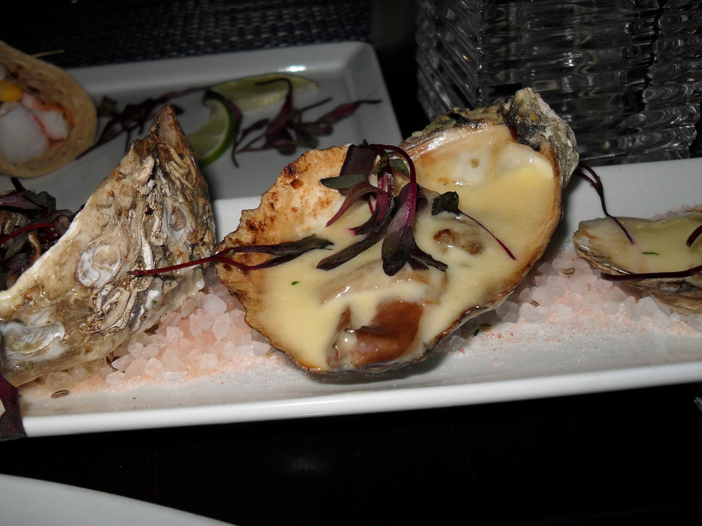 Next up were lobster tacos brimming with hunks of juicy, sweet, unadulterated lobster meat, which were equally beautiful to eye as they were the taste buds. The cubes of crustacean sat atop a corn and red onion salsa, an element that combined with the lobster to add an additional layer of sweetness to the dish. Don’t worry though…there was nothing saccharine here, as the smoky char of the grilled wheat tortilla – the perfect vehicle to serve myself a heaping helping – coupled with its fillings to create a match made in heaven. Turner also managed to take the oyster to another level by adding some heat – literally. Instead of going the typical traditional route, Turner’s Island Creek Oysters were served cooked: expertly grilled over the flame and dotted with maitaki mushrooms all while bathing in a riesling cream.